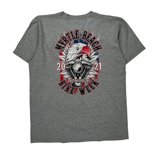 Myrtle Beach Bike Week 2021 Supreme Graphic T-Shirt - Large Grey Cotton Blend