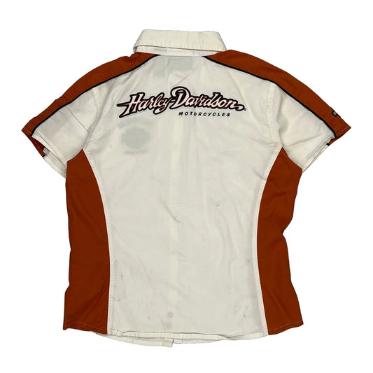 Harley Davidson Graphic Short Sleeve Shirt - Medium Orange Cotton
