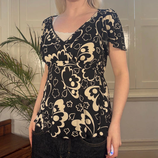 Cheap & Chic Moschino Floral Top - Large Black Viscose