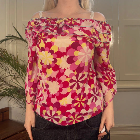 Love Moschino Floral Blouse - Small Red Silk