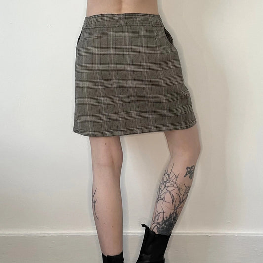 King Kong Checked Mini Skirt - 26W UK 6 Grey Cotton Blend