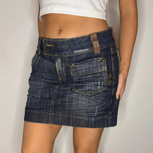 Yes Miss Mini Denim Skirt - 30W UK 10 Blue Cotton