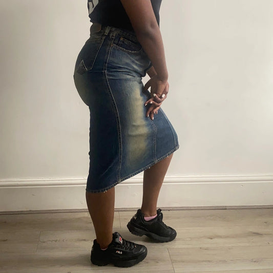 Roy Rogers Midi Denim Skirt - 31W UK 12 Blue Cotton