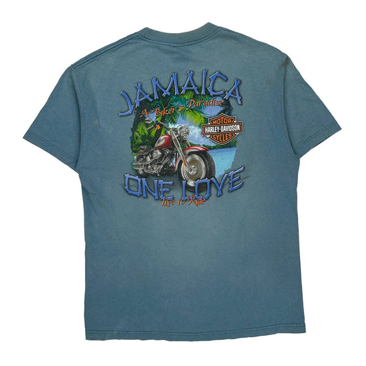 Jamaica Harley Davidson Graphic T-Shirt - Large Blue Cotton