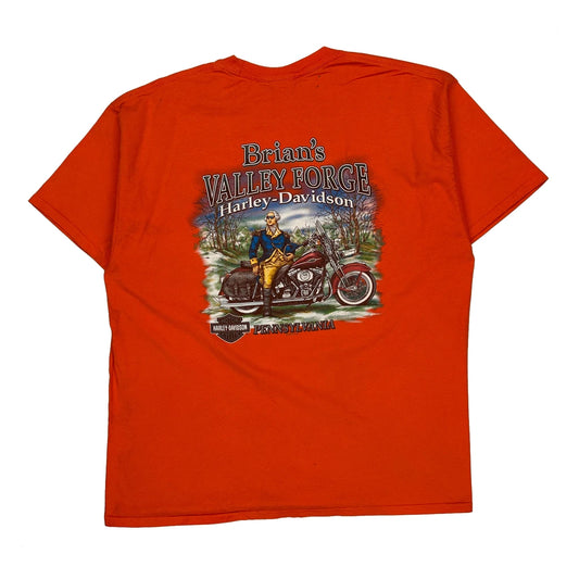 Brian'S Valley Forge Harley Davidson Graphic T-Shirt - 2XL Orange Cotton