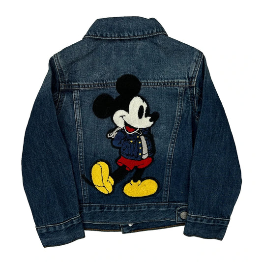 Age 4 Mickey Mouse Disney Cartoon Denim Jacket - 2XS Dark Wash Denim