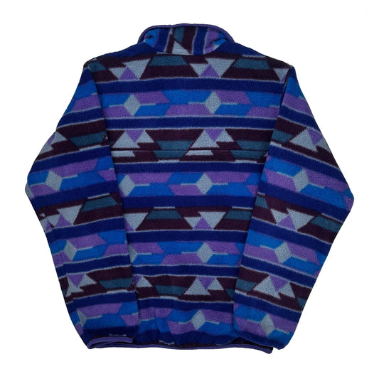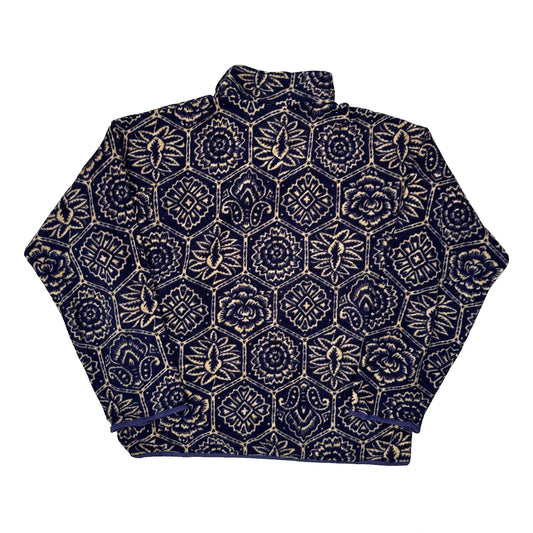 90S Made In USA Nepali Hexagon Patagonia T Snap Fleece - Large Blue Polyester