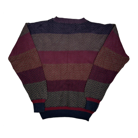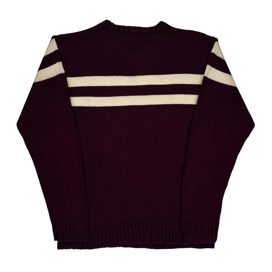 Made In Japan Polo By Ralph Lauren Striped Chunky Knit Jumper - XL Burgundy Cotton
