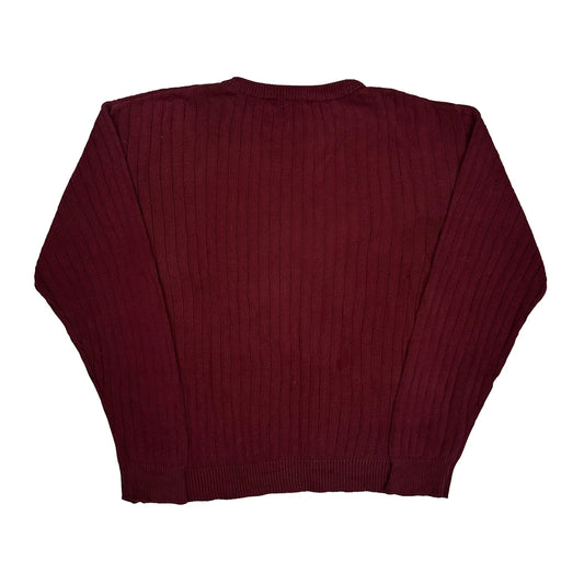 Made In USA Chaps Ralph Lauren Chunky Ribbed Knit Jumper - Large Burgundy Cotton