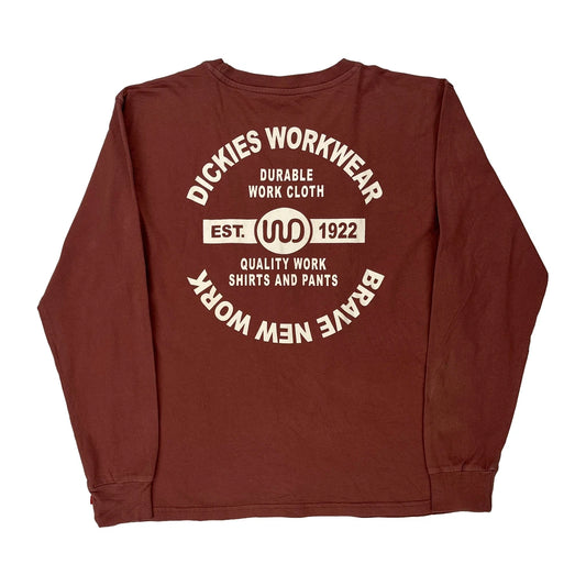 Dickies Long Sleeve T-Shirt - Large Brown Cotton