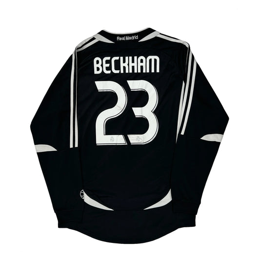 David Beckham Real Madrid Adidas 2006-07 Away Long Sleeve Football Shirt - Large Black Polyester