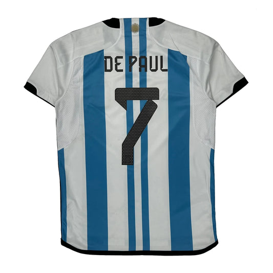 Argentina National Team Adidas 2022-23 De Paul Home Football Shirt - Medium Blue Polyester