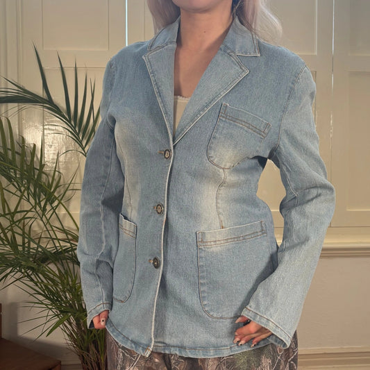 Bangjuji Denim Jacket - Medium Blue Cotton Blend