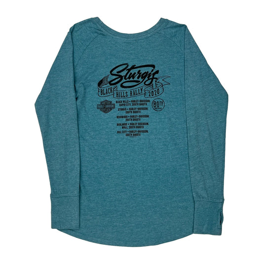 Sturgis Black Hills Rally 2020 Harley Davidson Graphic Long Sleeve T-Shirt - Medium Blue Cotton
