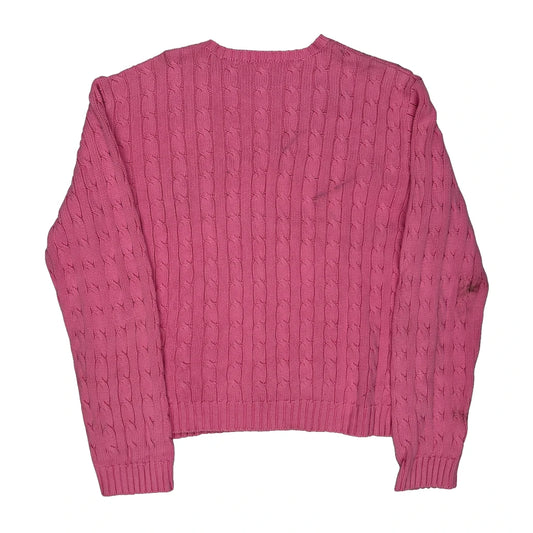 Ralph Lauren Cable Knit Jumper - Large Pink Cotton