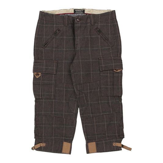 40 Weft Checked Cargo Shorts - 33W UK 12 Brown Cotton