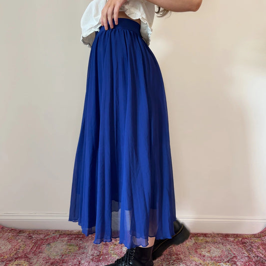 Unbranded Midi Pleated Skirt - 27W UK 8 Blue Polyester Blend