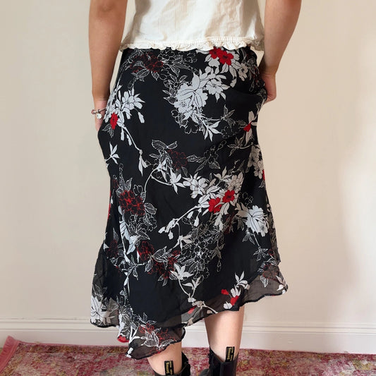 Kim Rogers Floral Midi Skirt - 28W UK 8 Black Polyester