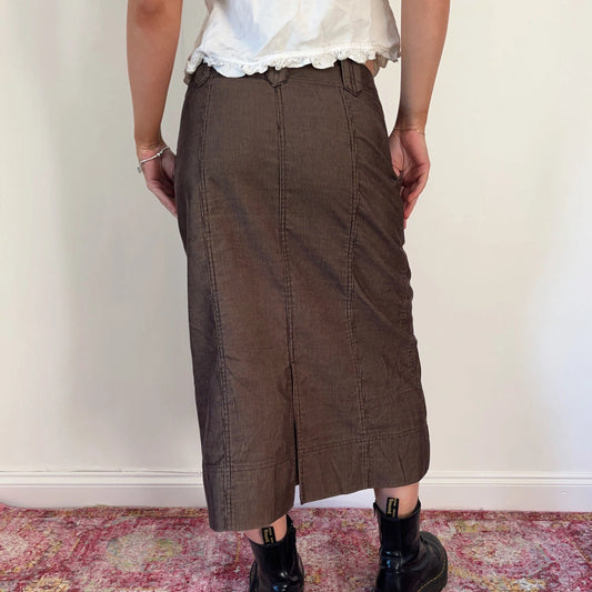 Street One Midi Cord Skirt - 28W UK 8 Brown Cotton
