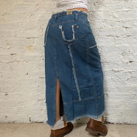 Kocca Maxi Denim Skirt - 34W UK 14 Blue Cotton