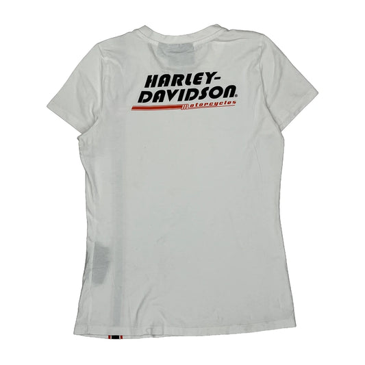 Harley Davidson Striped T-Shirt - Small White Cotton