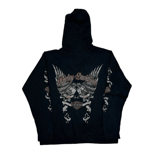 Harley Davidson Graphic Hoodie - Large Black Cotton Blend