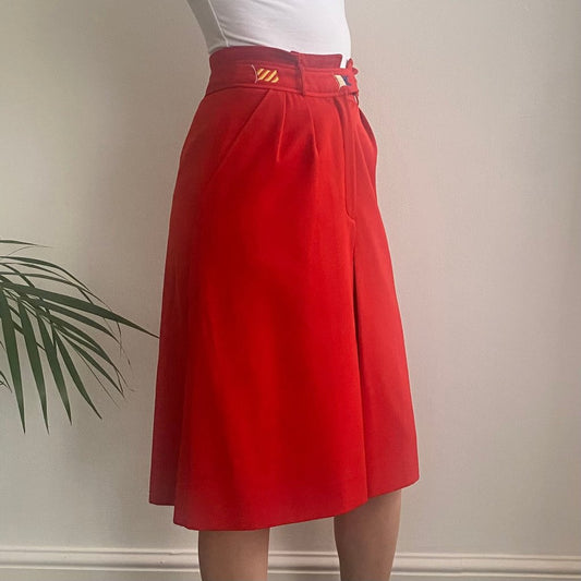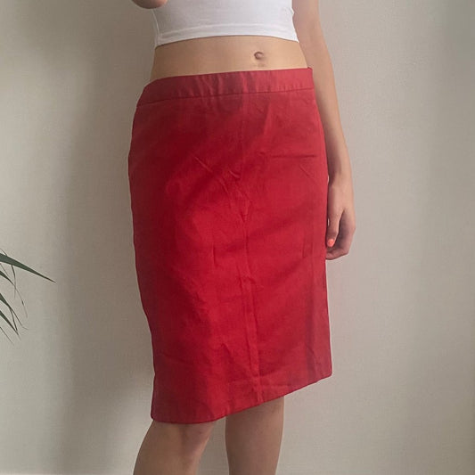 Les Copains Midi Skirt - 24W UK 4 Red Cotton