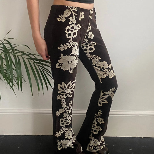 Rinascimento Flared Trousers - 28W UK 6 Brown Cotton Blend