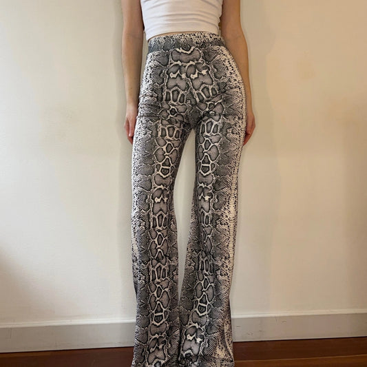 Animal Print Unbranded Flared Trousers - 24W UK 6 Grey Cotton Blend