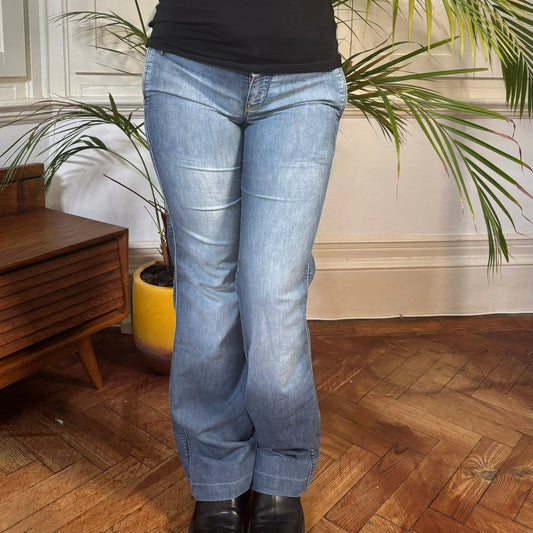Pit Stop Flared Jeans - 30W UK 6 Blue Cotton