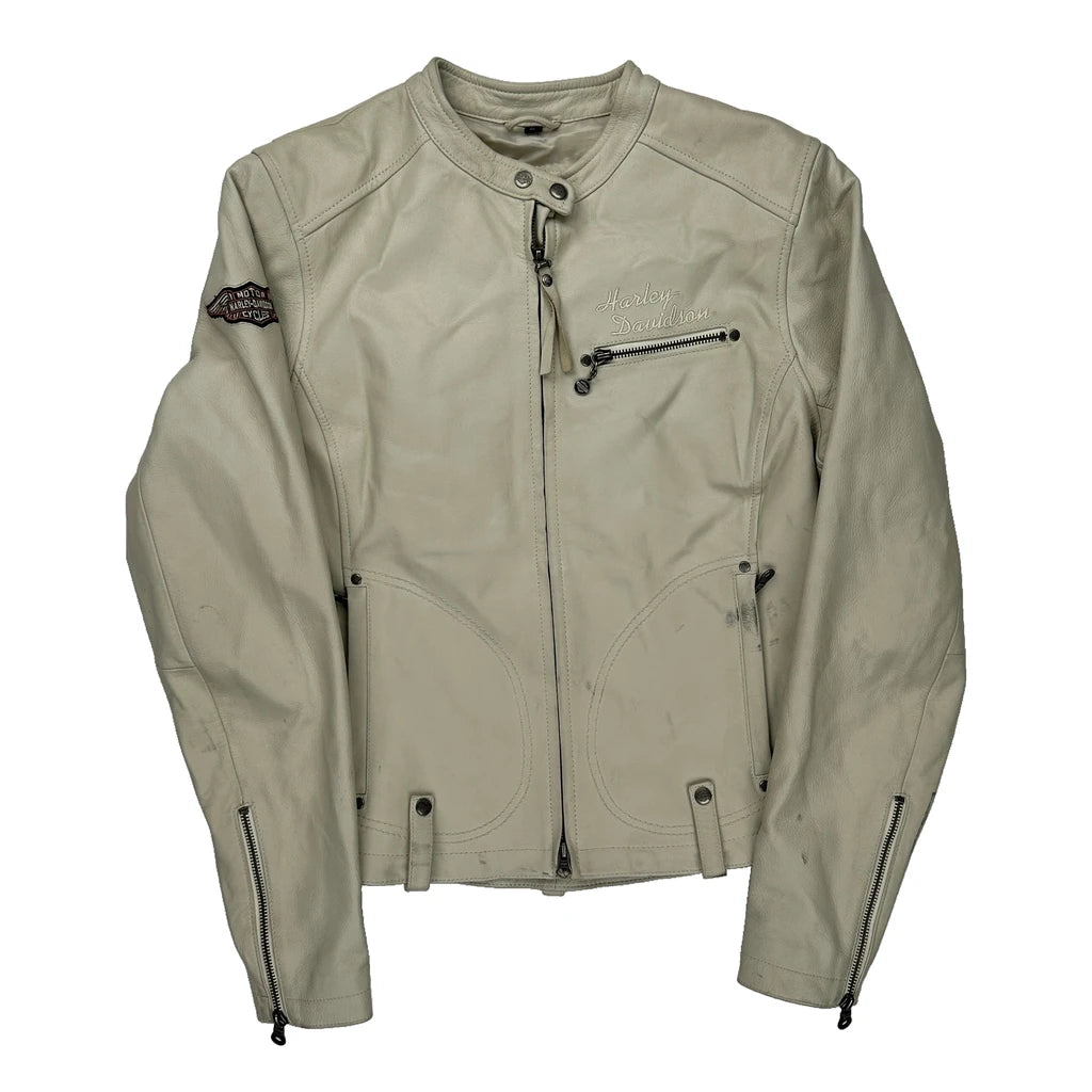 Motorcycles Harley Davidson Studded Leather Jacket - XL Cream Leather