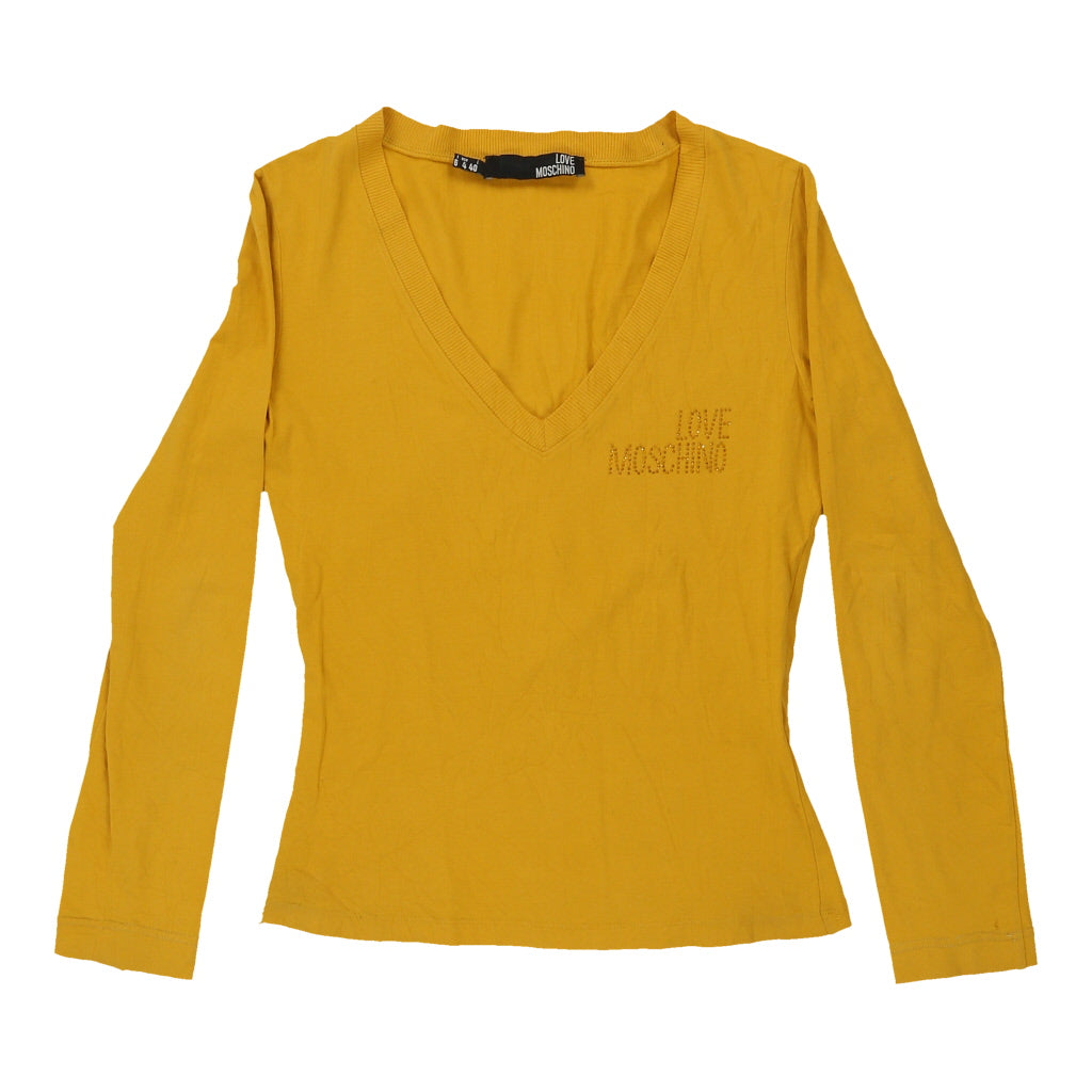 Love Moschino V-neck Long Sleeve Top - Medium Yellow Cotton