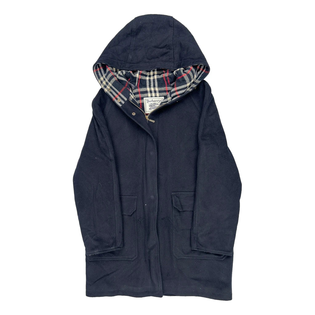 Burberry Checked Coat - XS Navy Wool