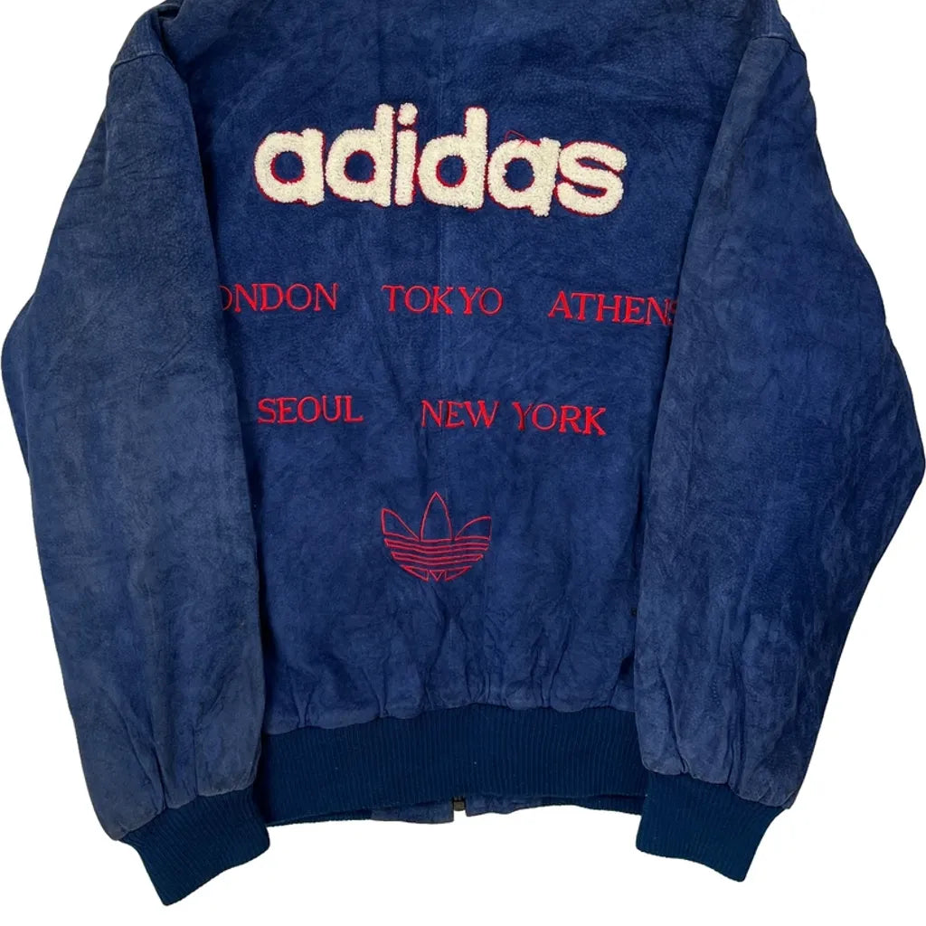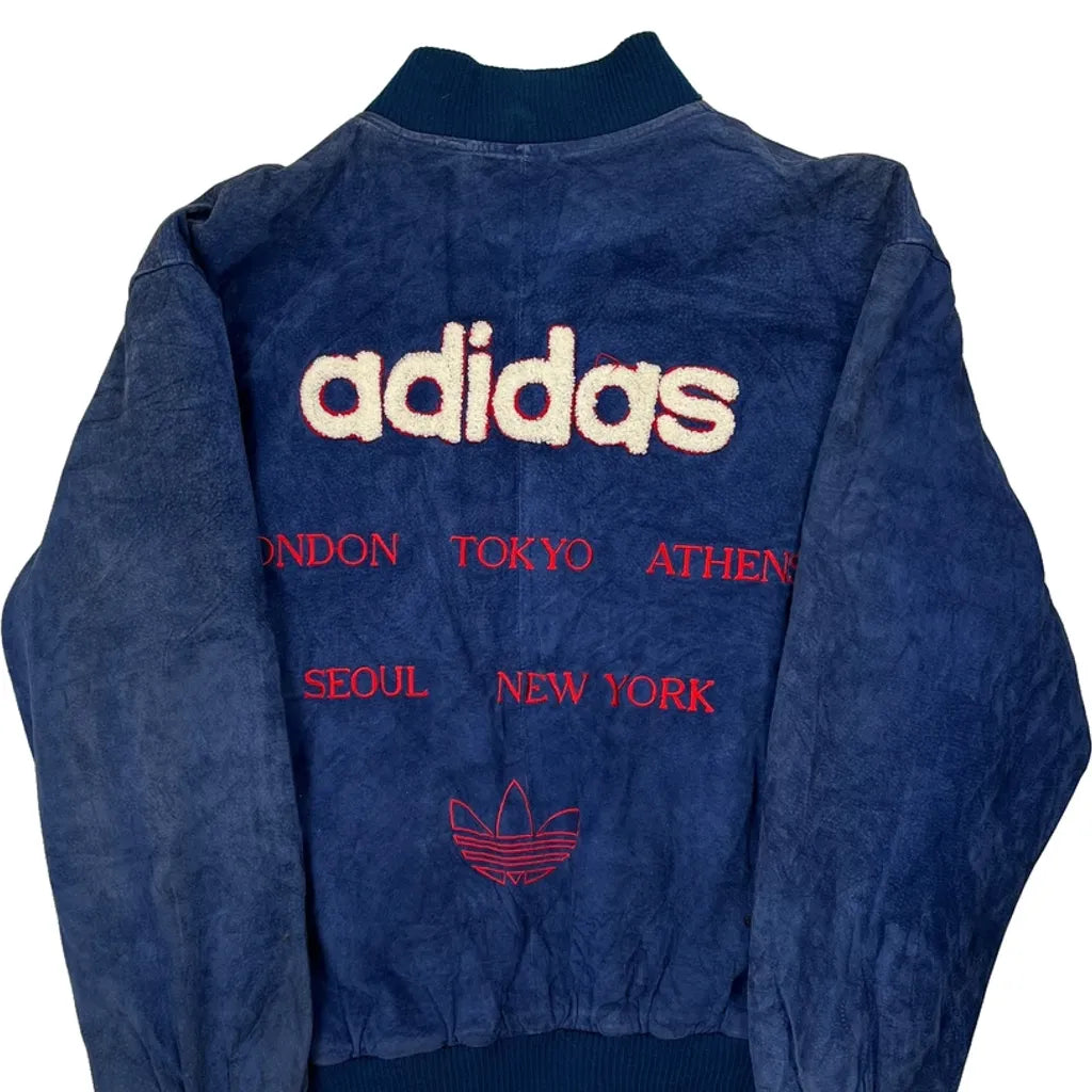 1980S Adidas Spellout Bomber Jacket - Small Blue Suede