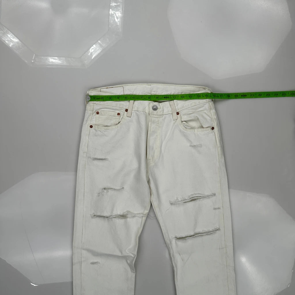 White Jeans With Ripped Details, Minor Marks On Bottom Hem.