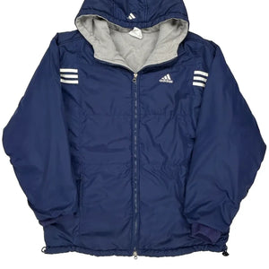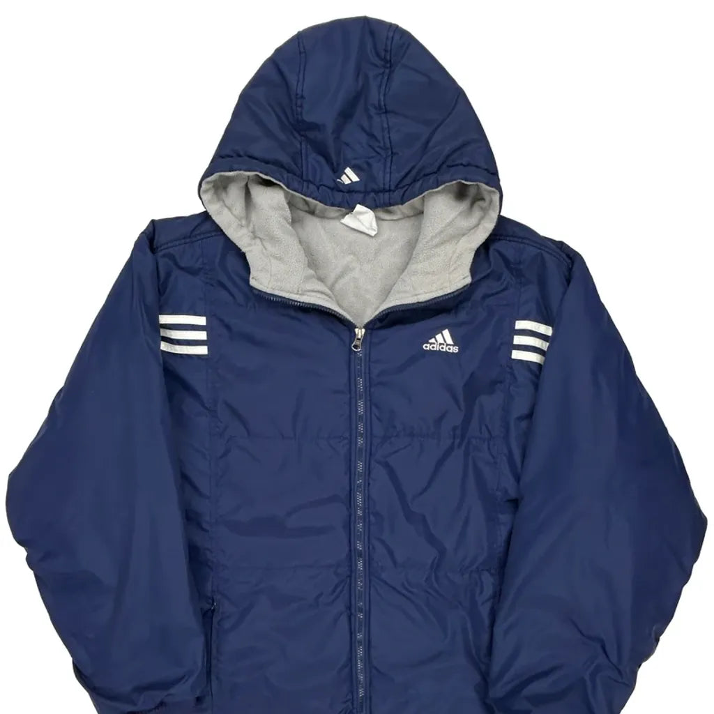 Blue Adidas Hoodie With White Stripes And Zipper Closure