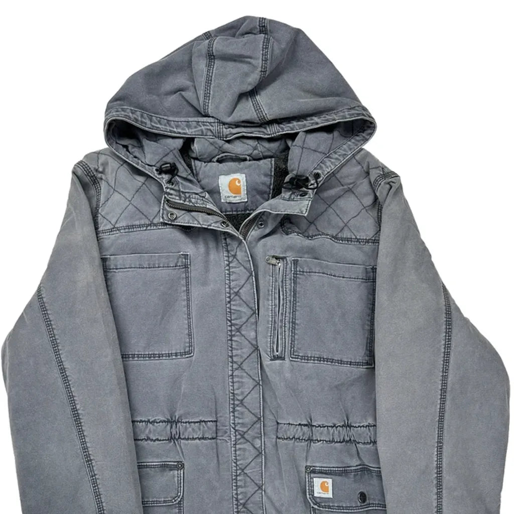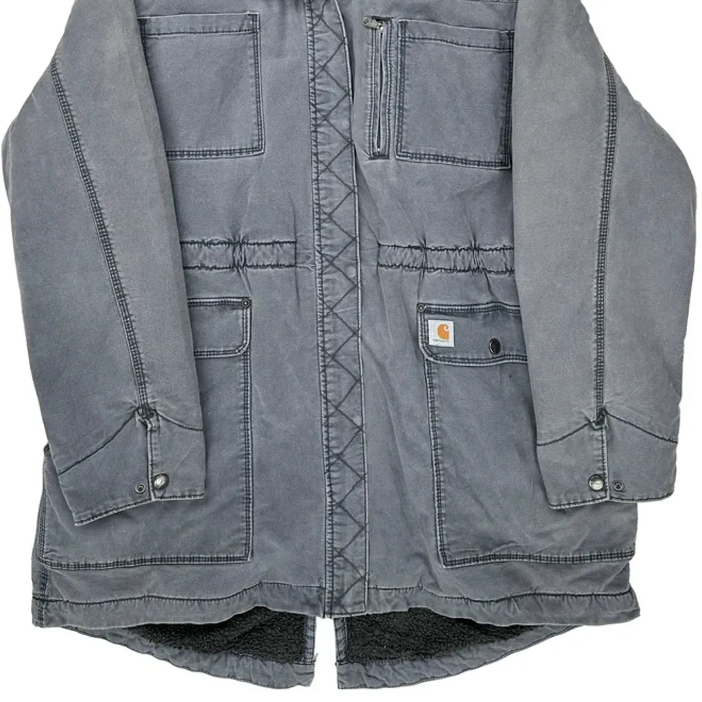 Carhartt Grey Parka With Quilted Design And Multiple Pockets