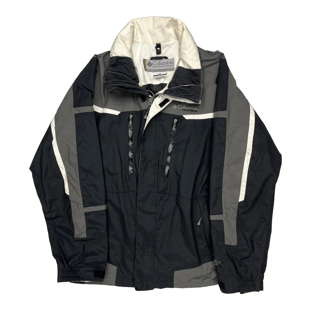 Columbia Men'S Ski Jacket In Black, Grey, And White Colorway.