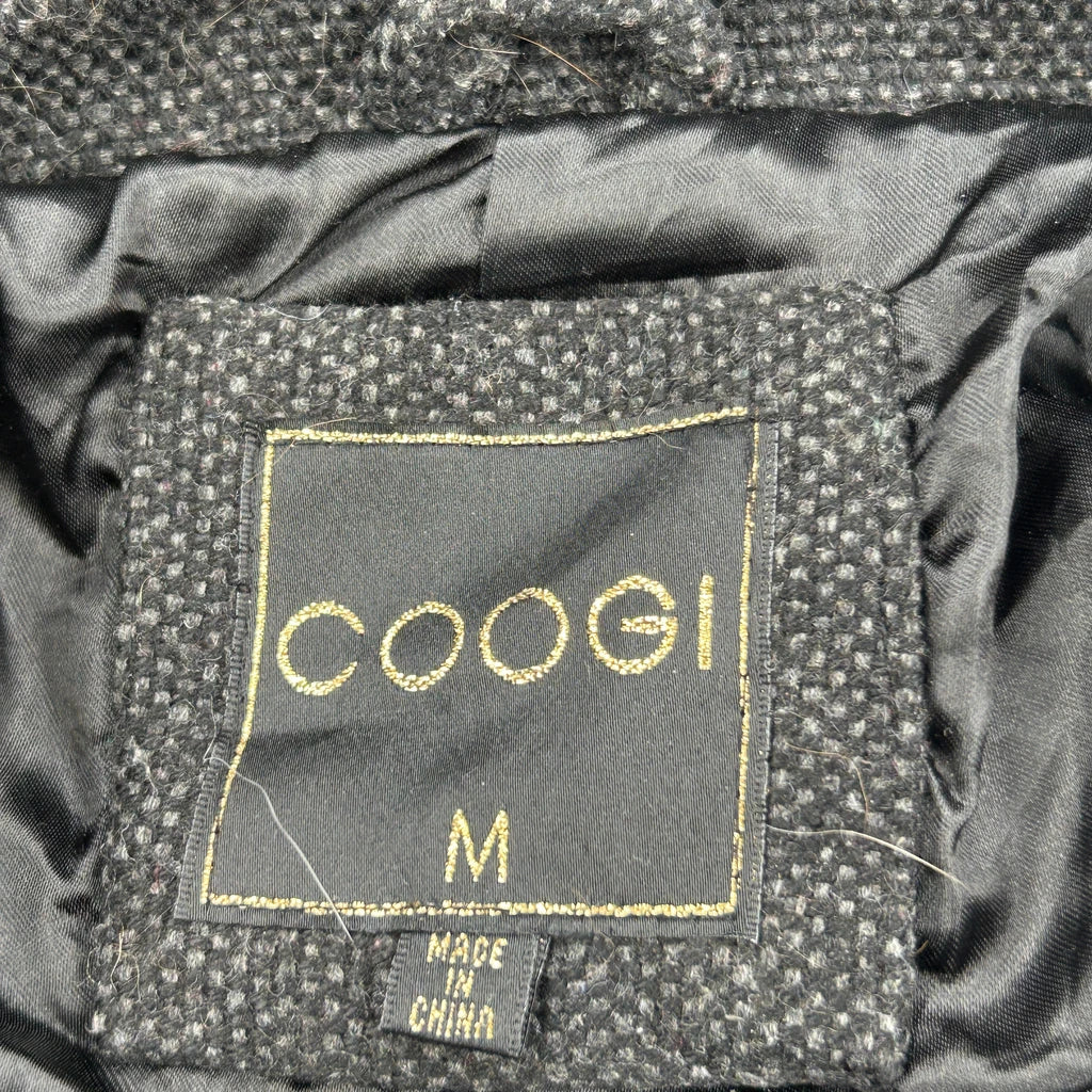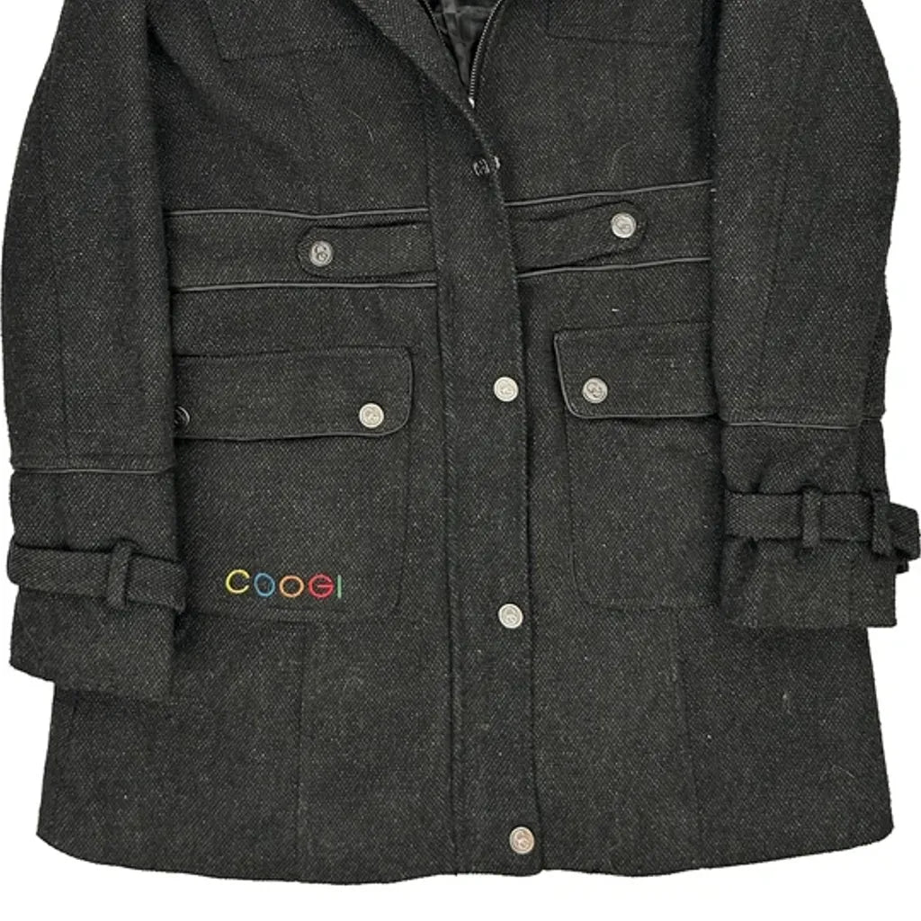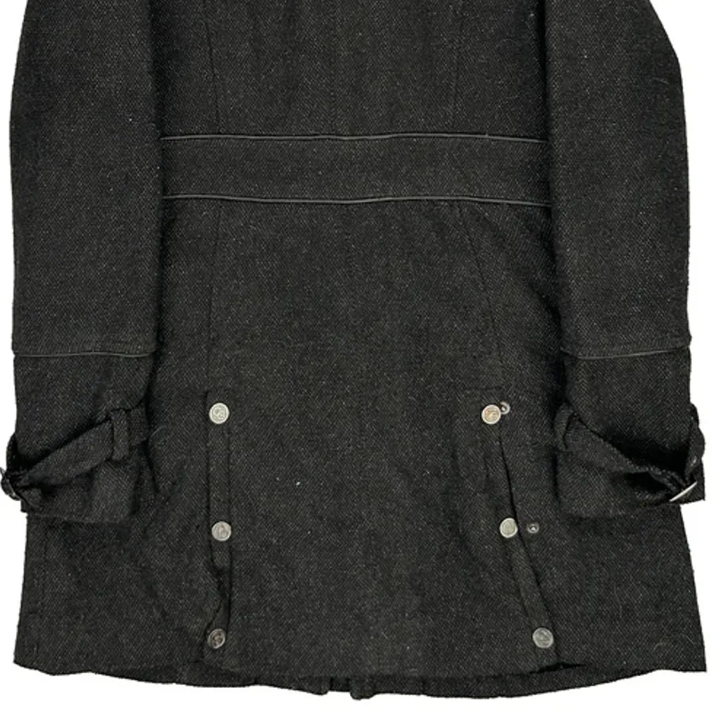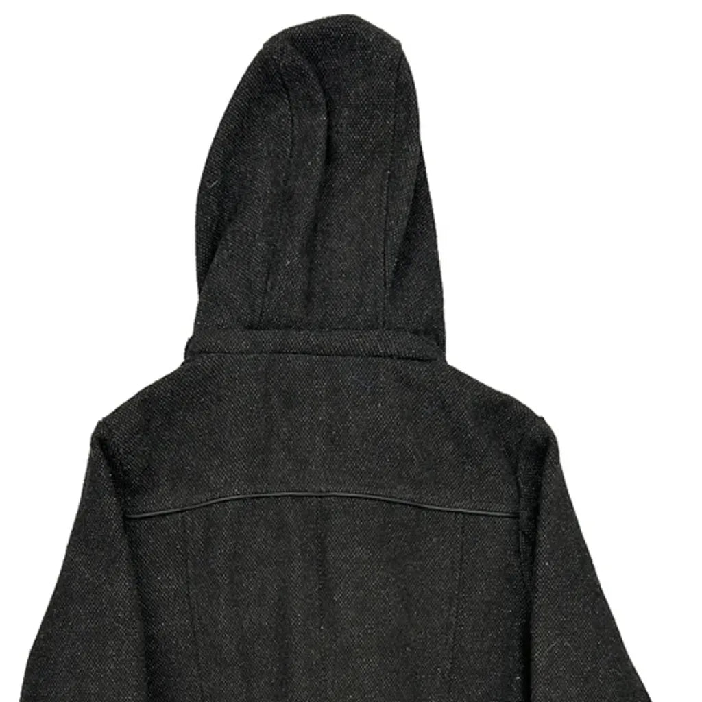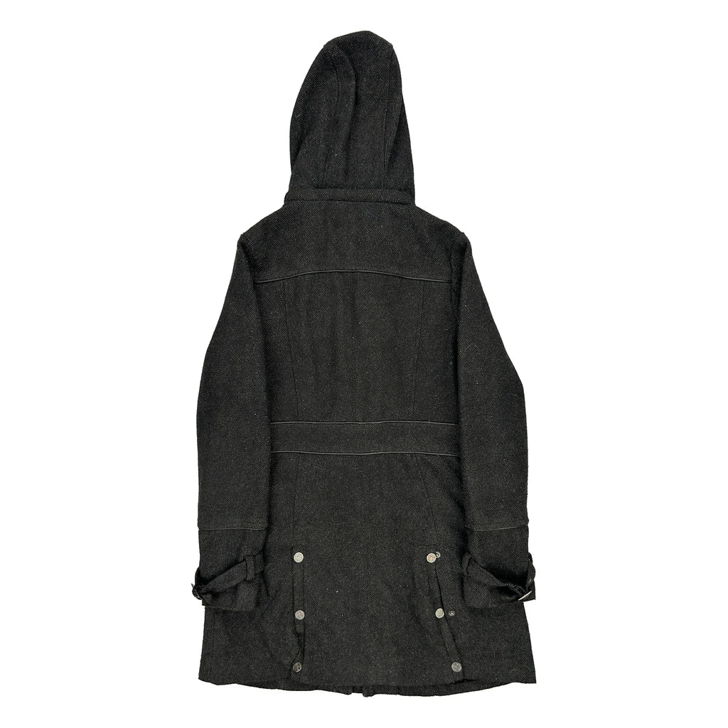 Black Coat With Hood And Button Closure. No Visible Marks Or Faults.