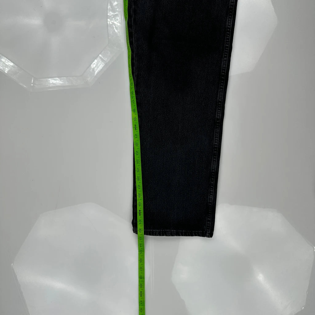 Faded Black Jeans With A Red Levi'S Label On The Back Pocket.
