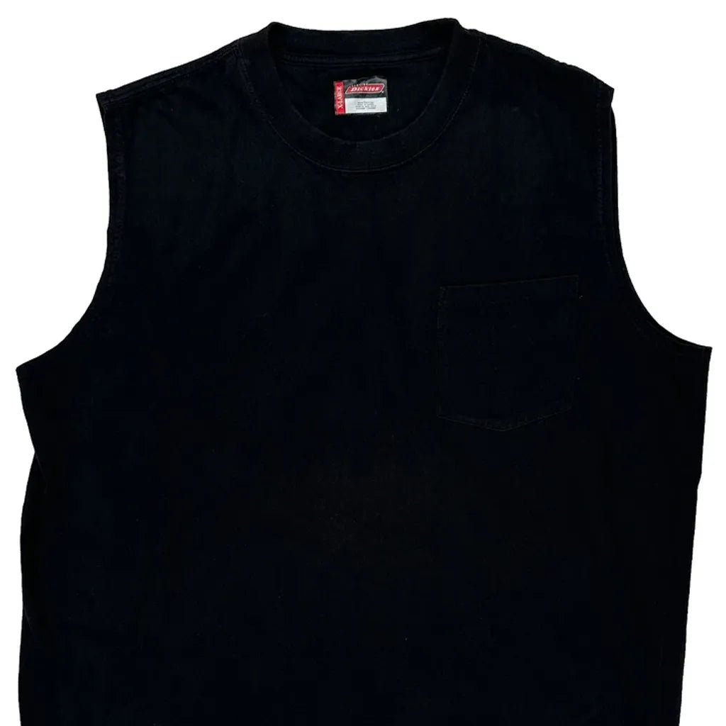 Black Sleeveless Vest With A Pocket On The Left Chest.