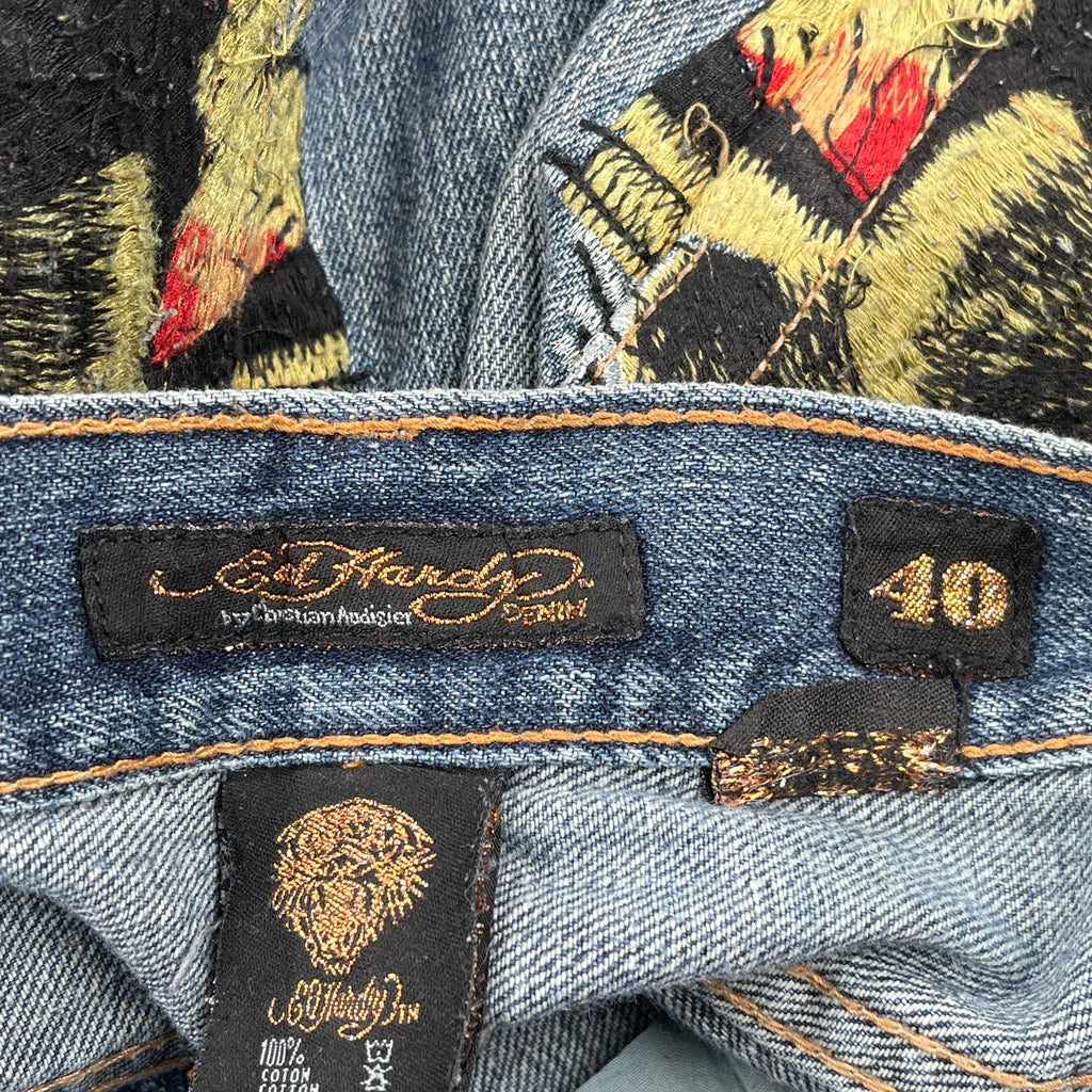 Ed Hardy Graphic Jeans - 40W 32L Blue Cotton