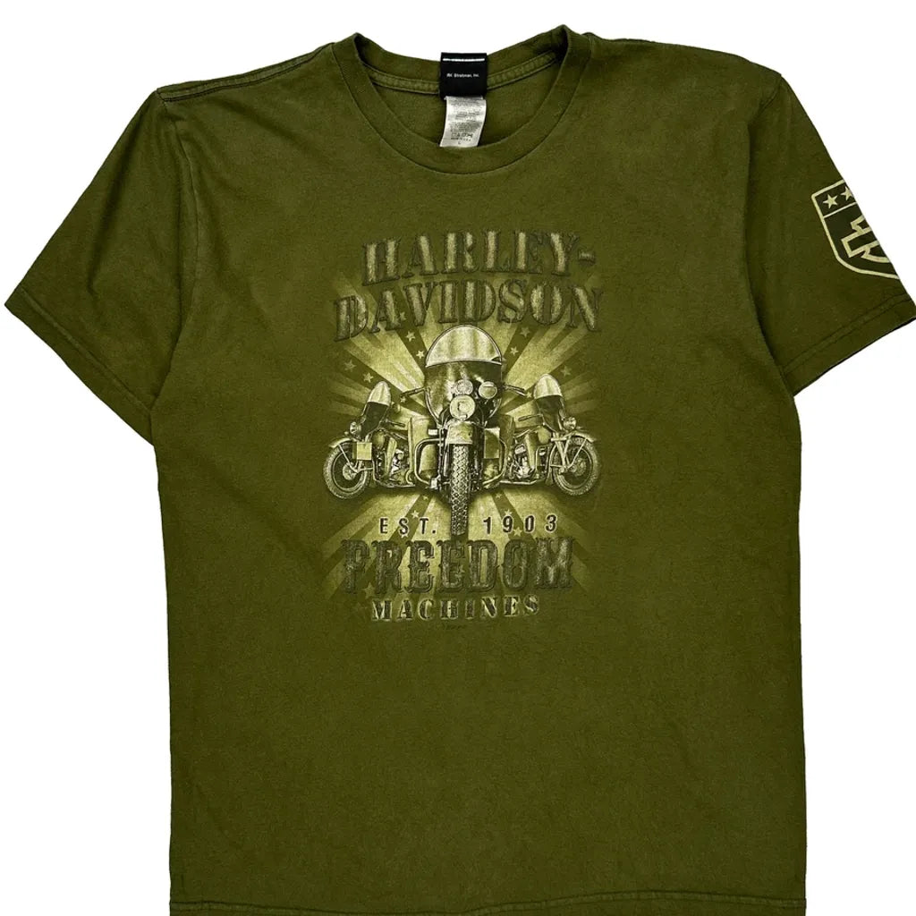 Freedom Machines Harley Davidson Graphic T-Shirt - Large Green Cotton