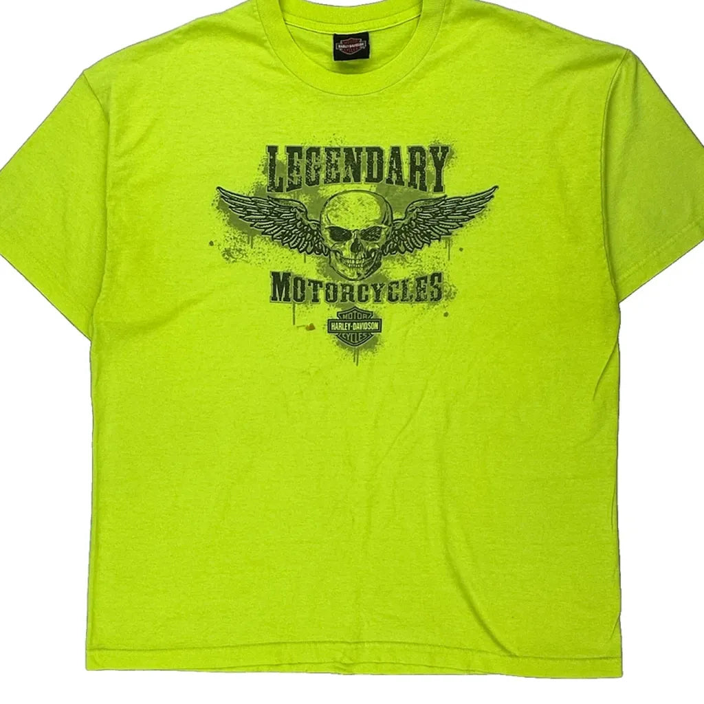Harley Davidson Graphic T-Shirt - 2XL Yellow Cotton