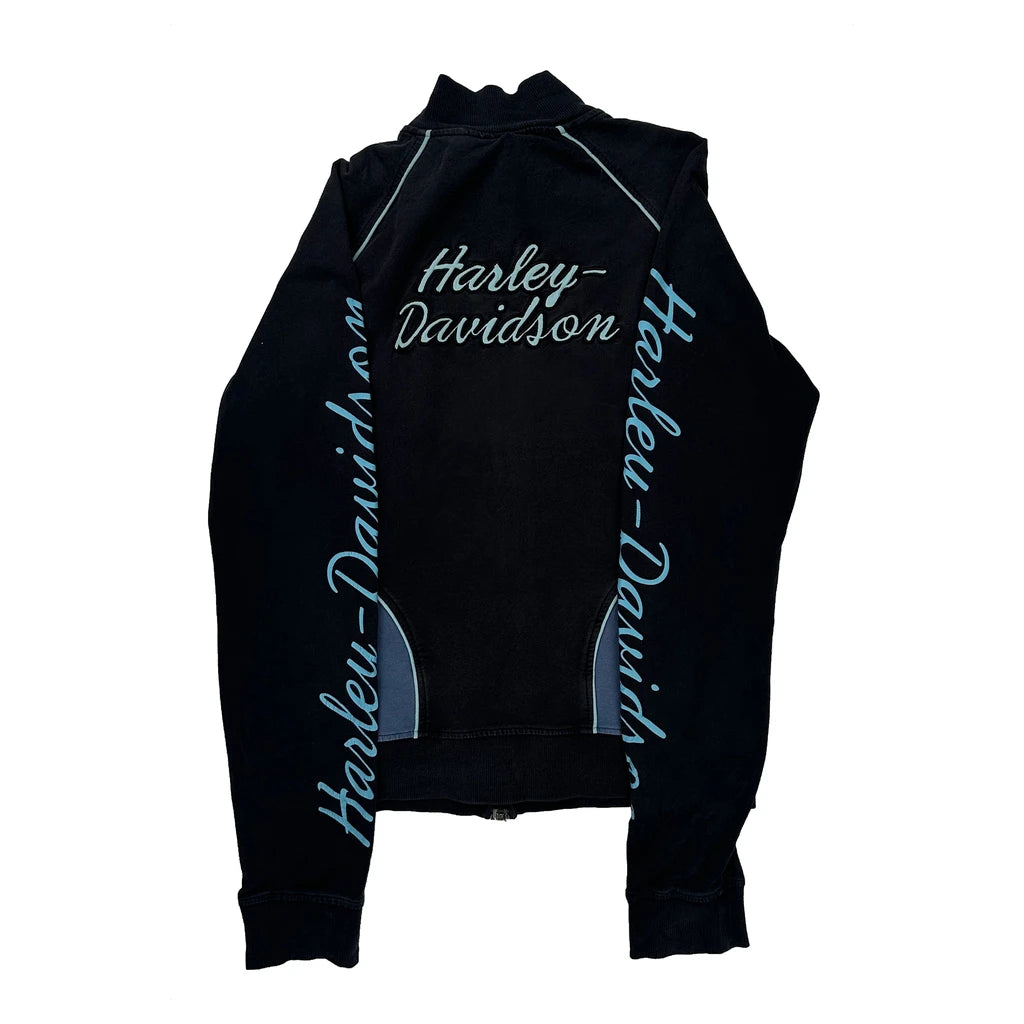 Harley Davidson Spellout Zip Up - Medium Blue Cotton