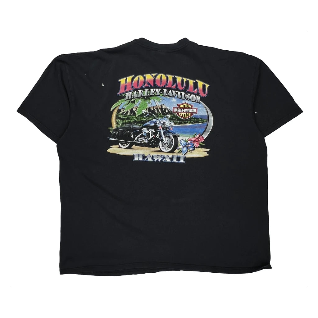 Honolulu Harley Davidson Graphic T-Shirt - 3XL Black Cotton