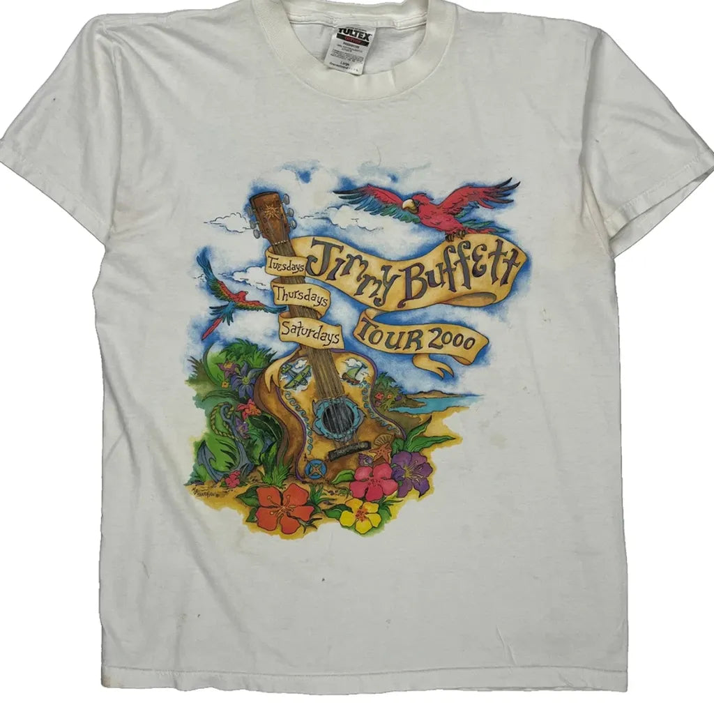Jimmy Buffett 2000 Tour Tultex Band T-Shirt - Large White Cotton