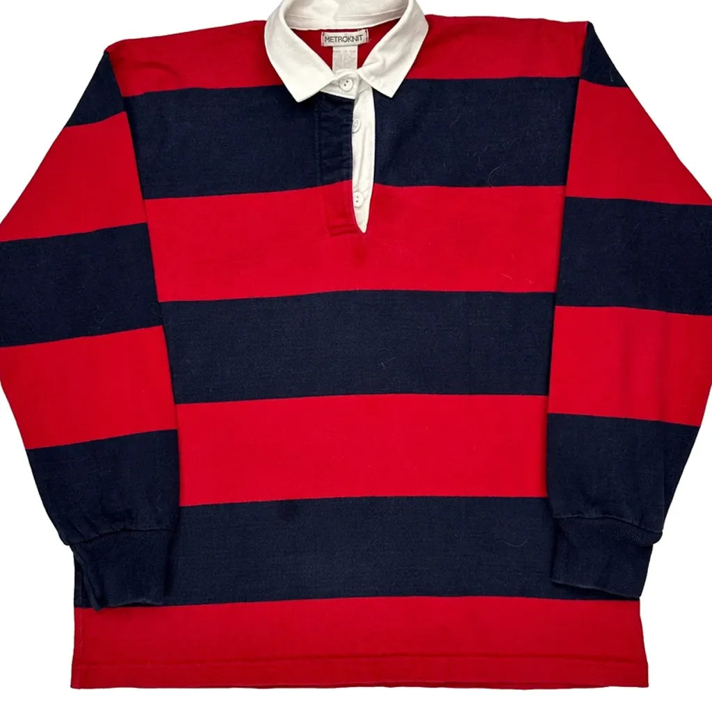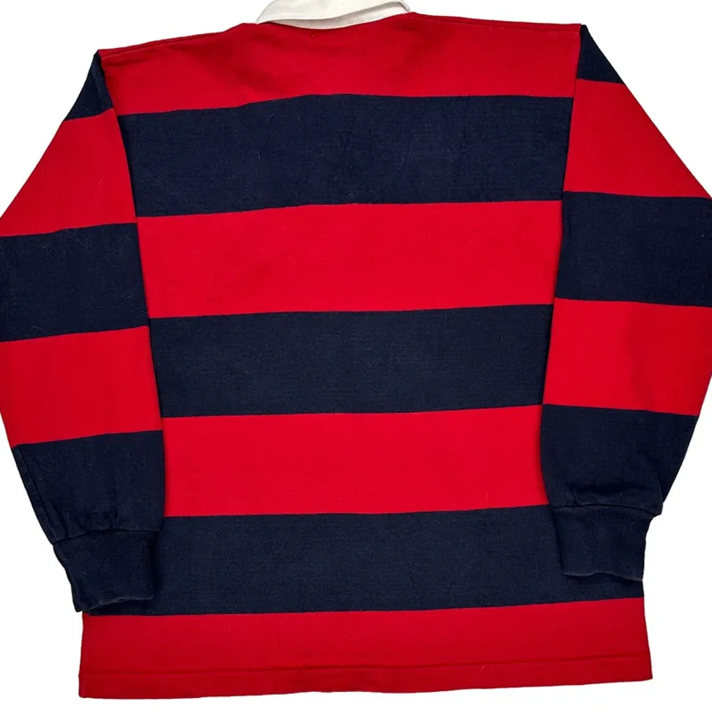 Red And Navy Striped Rugby Shirt With White Collar