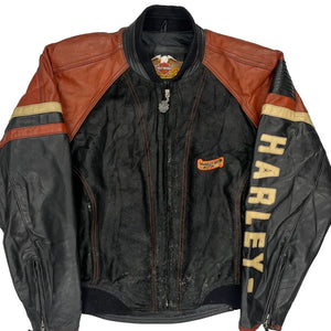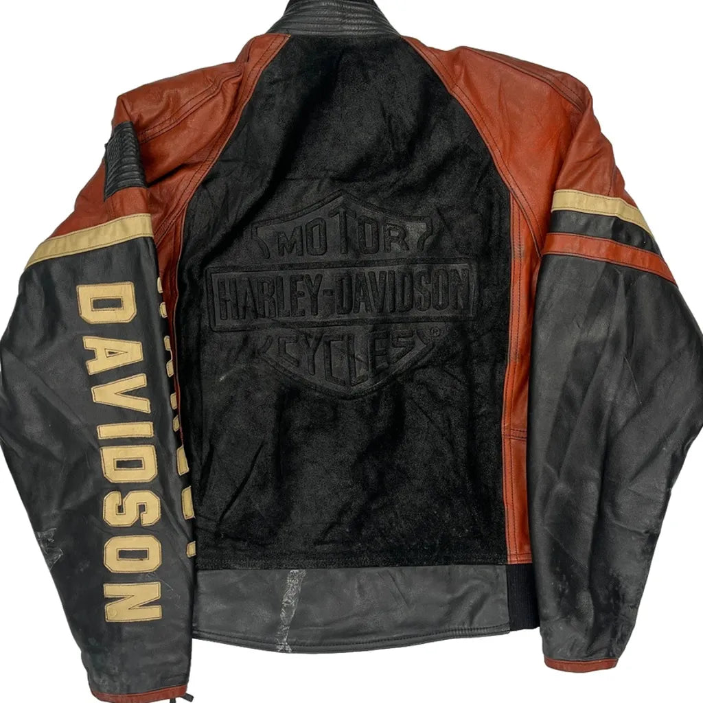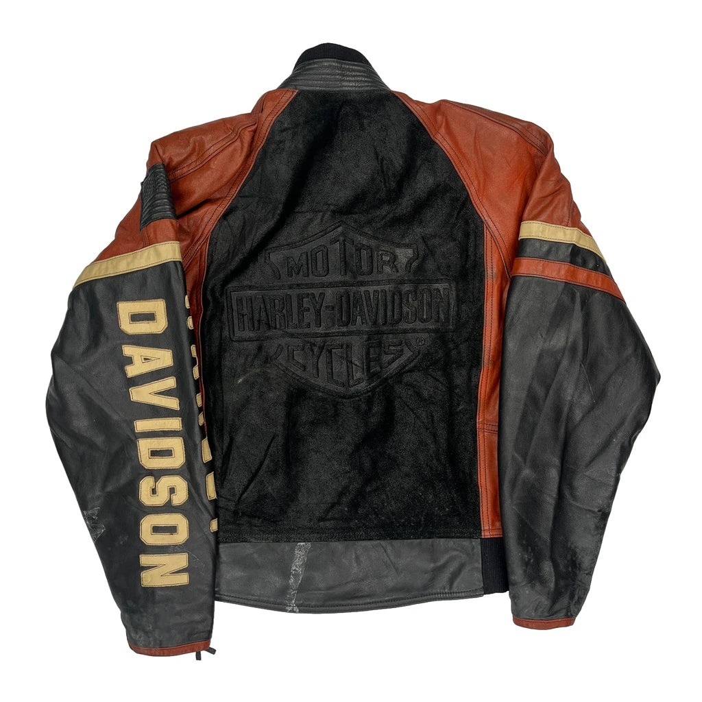 Made In USA Harley Davidson Spellout Leather Jacket - Medium Brown Leather