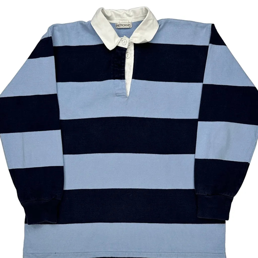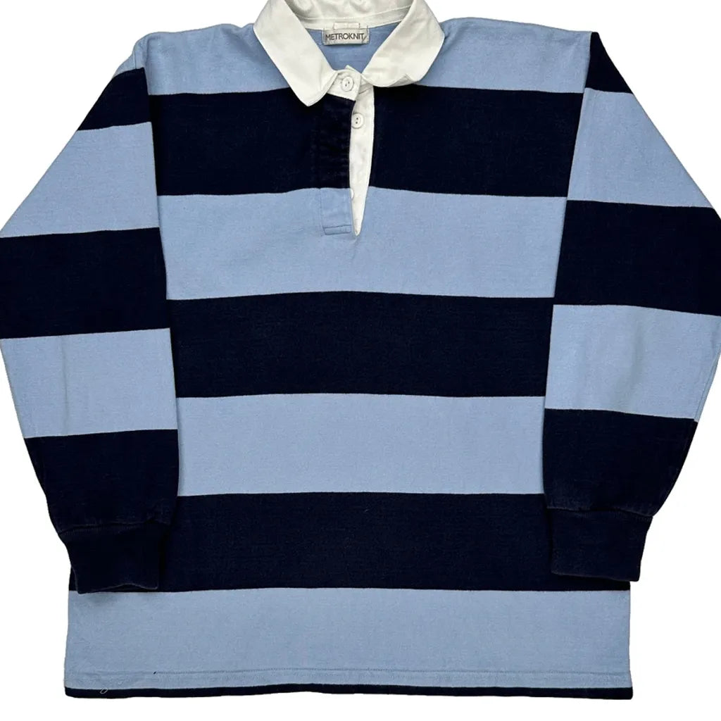 Made In USA Metroknit Striped Rugby Shirt - Large White Cotton